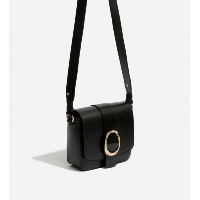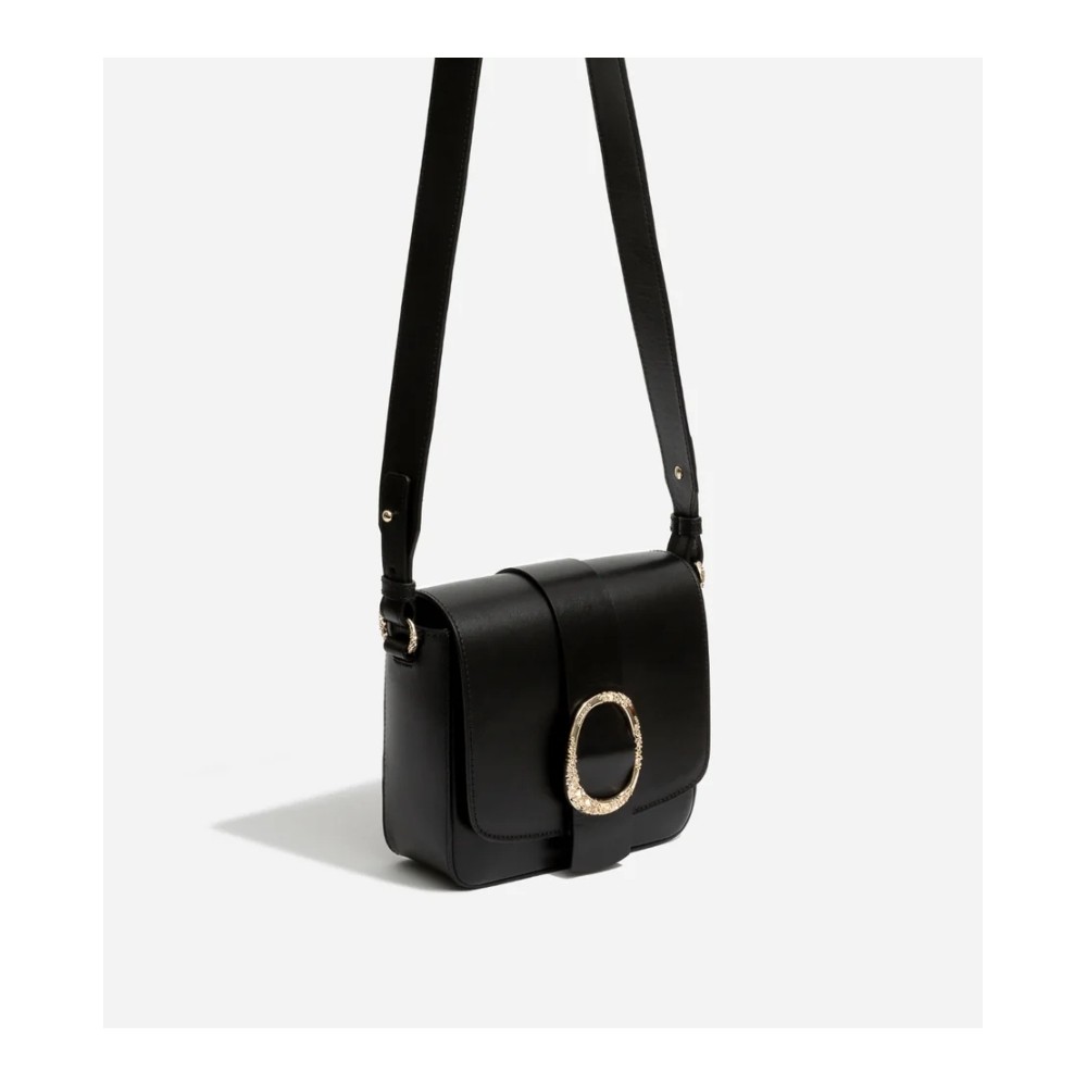Bolso bandolera de piel con detalle de hebilla en dorado