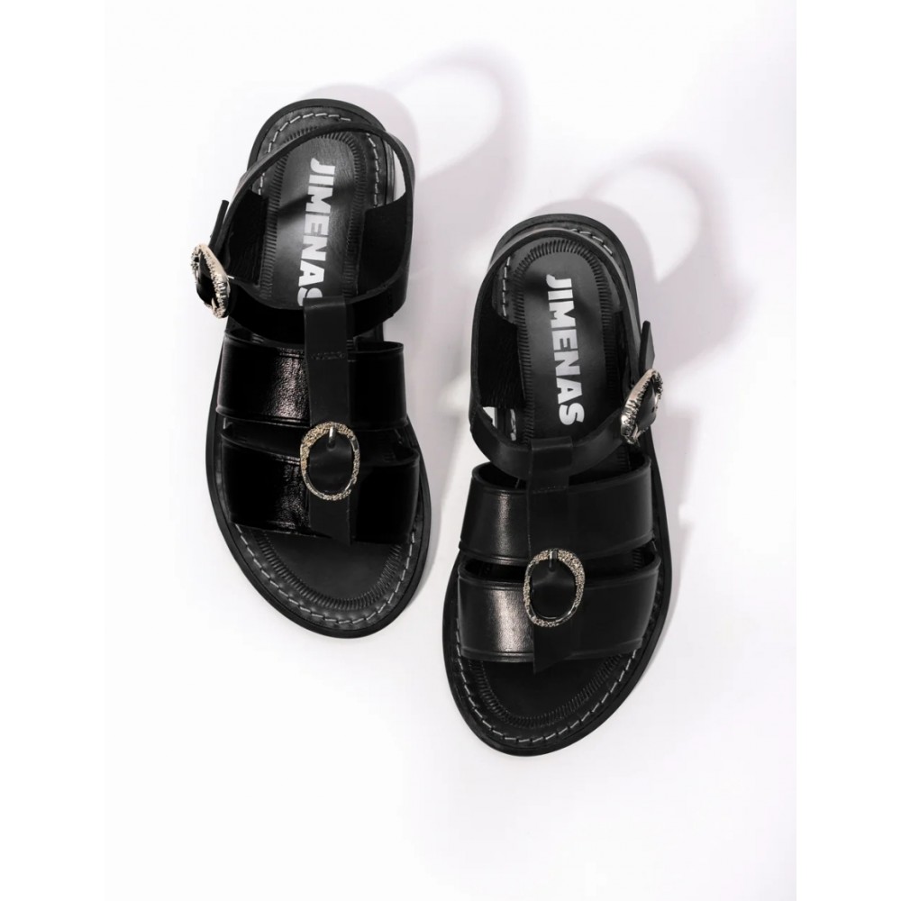 Sandalia negra de piel con detalles en dorado